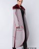 Выразительным акцентом модели является воротник, отделанный мехом чернобурки. Густая, объёмная фактура меха эффектно дополняет гладкую поверхность кашемира, добавляя образу глубину и визуальную выразительность. Такое сочетание материалов подчёркивает премиальный характер изделия и делает пальто особенно эффектным в холодный сезон.
