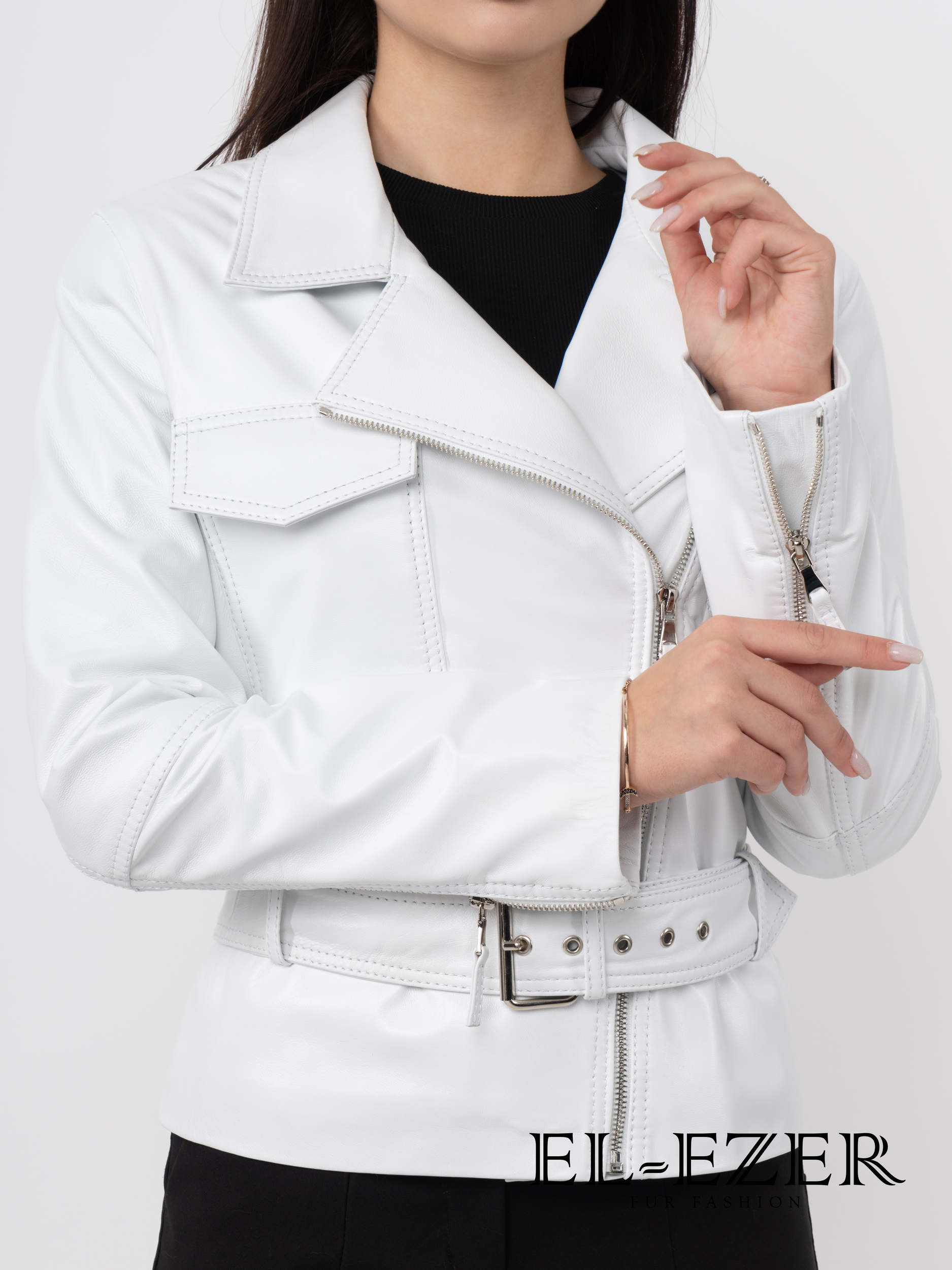 Эффектная женская косуха выполнена из натуральной кожи премиального качества — мягкой, пластичной и благородной на ощупь. Асимметричный крой, характерная косая застёжка и продуманные детали создают дерзкий, современный силуэт, который подчёркивает уверенность и стиль своей обладательницы.