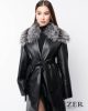 Кожаный плащ с отделкой из чернобурки
