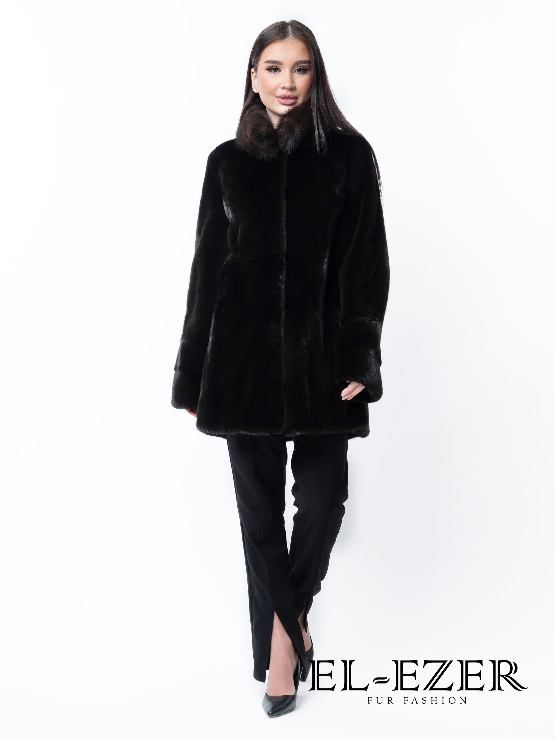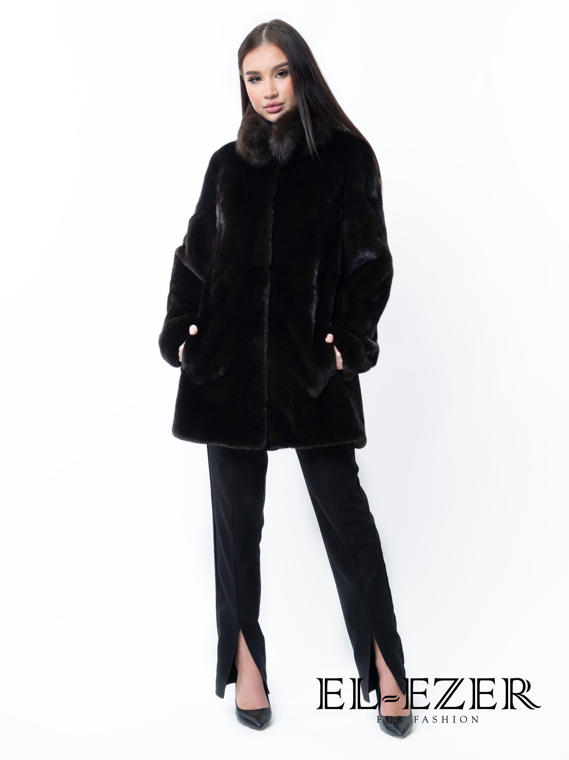 Премиальная шуба из норки NAFA Blackglama с отделкой соболем