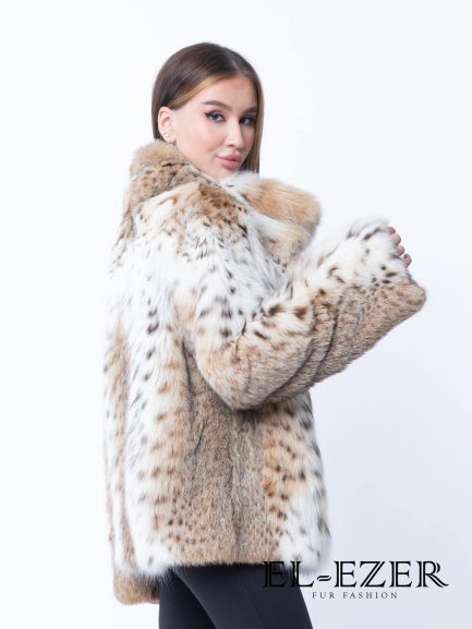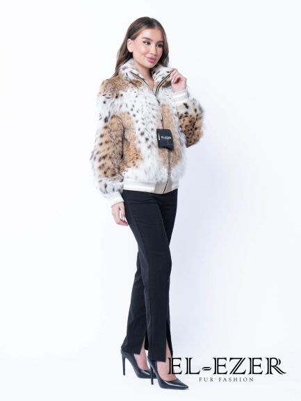 Премиальная шуба-бомбер из рыси NAFA Northern с капюшоном