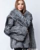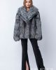 Эффектная шуба выполнена из натуральной чернобурки — выразительного и роскошного меха с характерным контрастным окрасом и богатой, объёмной фактурой. Густой, длинный ворс с природными переливами от серебристых до глубоких тёмных оттенков создаёт яркий визуальный эффект и подчёркивает статус изделия.